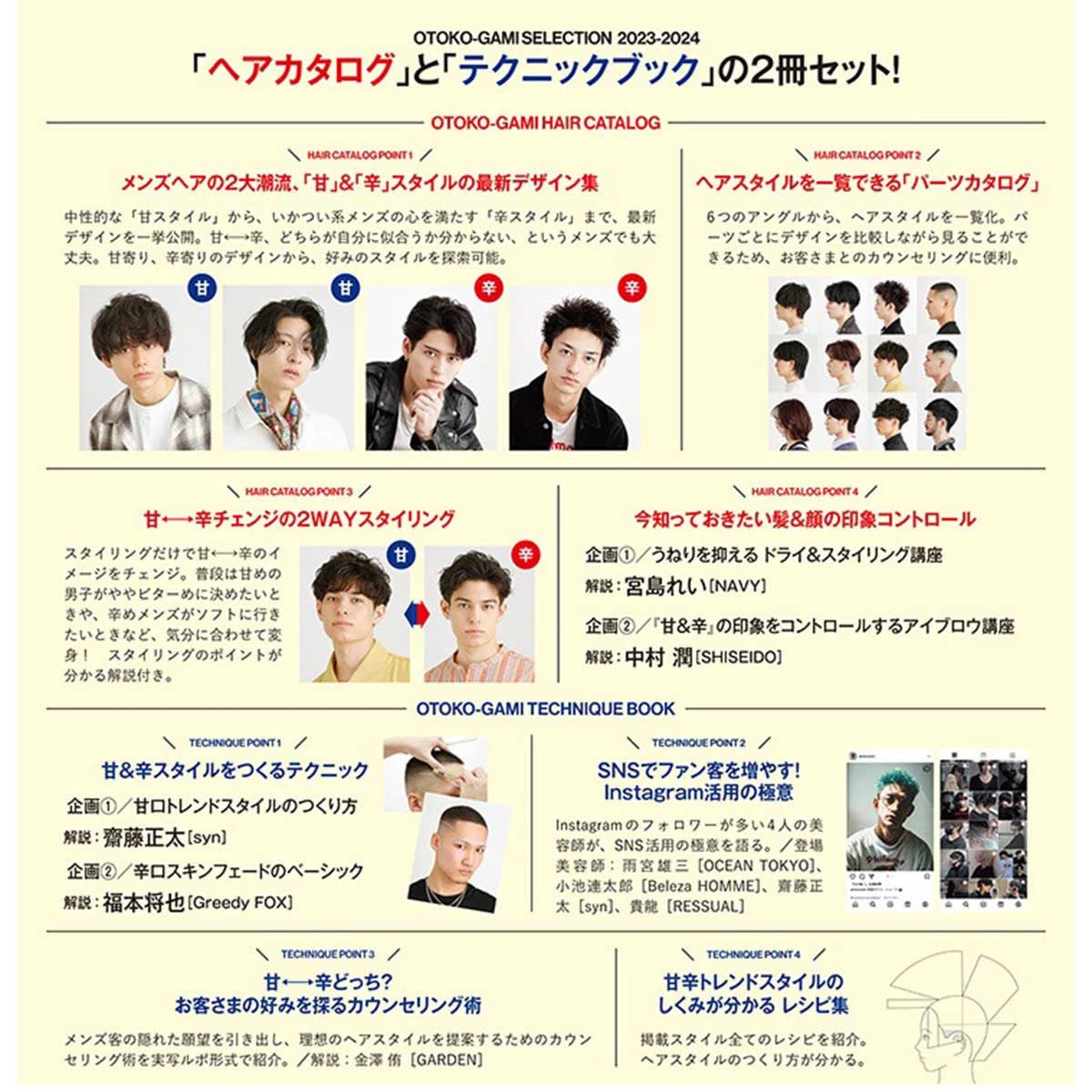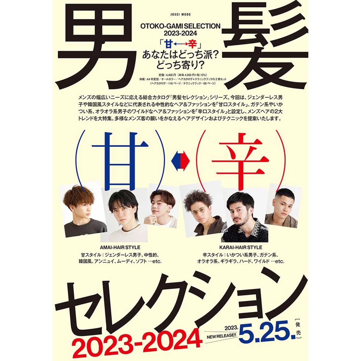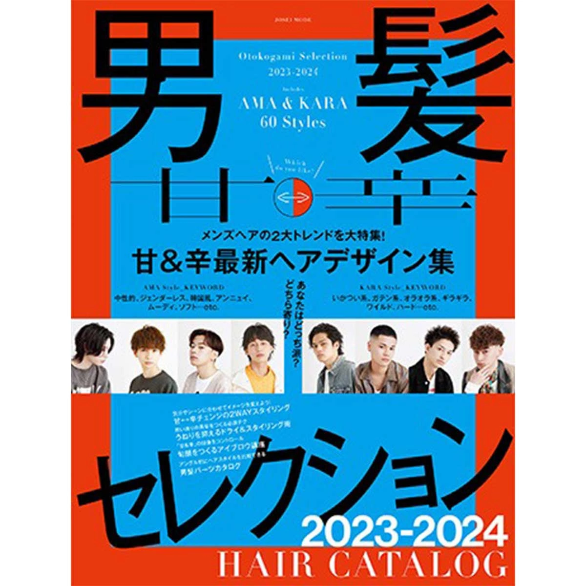 This edition of the "Men's Hair Selection" series focuses on two major trends in men's hair: "Sweet Styles," which refer to androgynous hairstyles and fashions typified by genderless men and Korean styles; and "Spicy Styles," which refer to wild hairstyles and fashions associated with blue-collar, tough, and aggressive men.