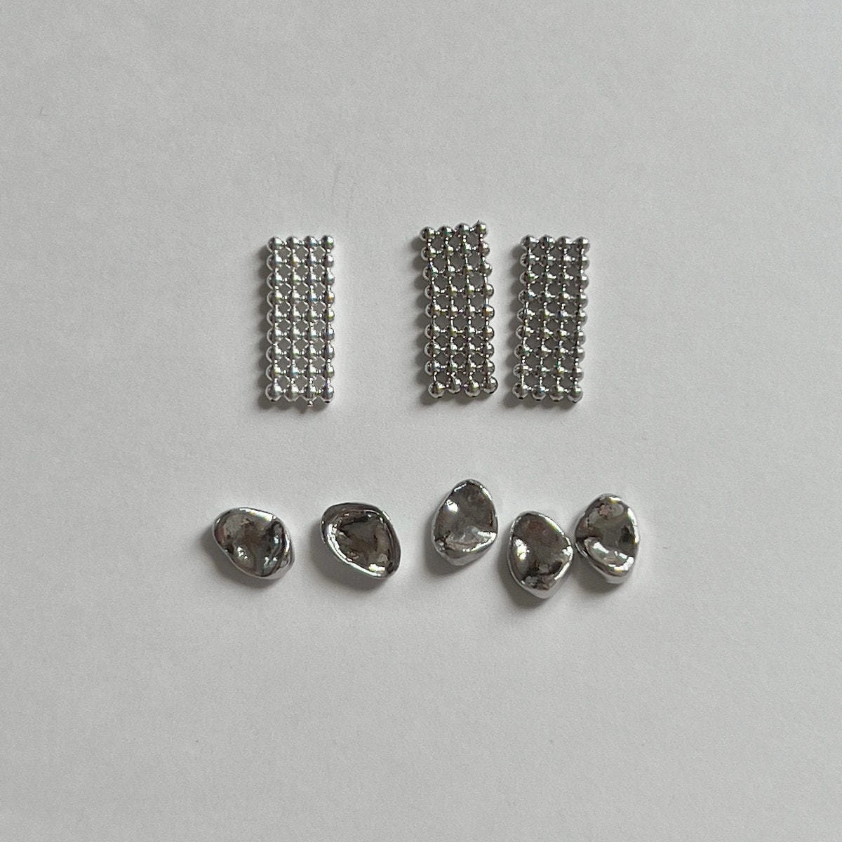 3 large ball chain sheets of approximately 17 mm each (2 metal silver sheets, 1 white silver sheet)