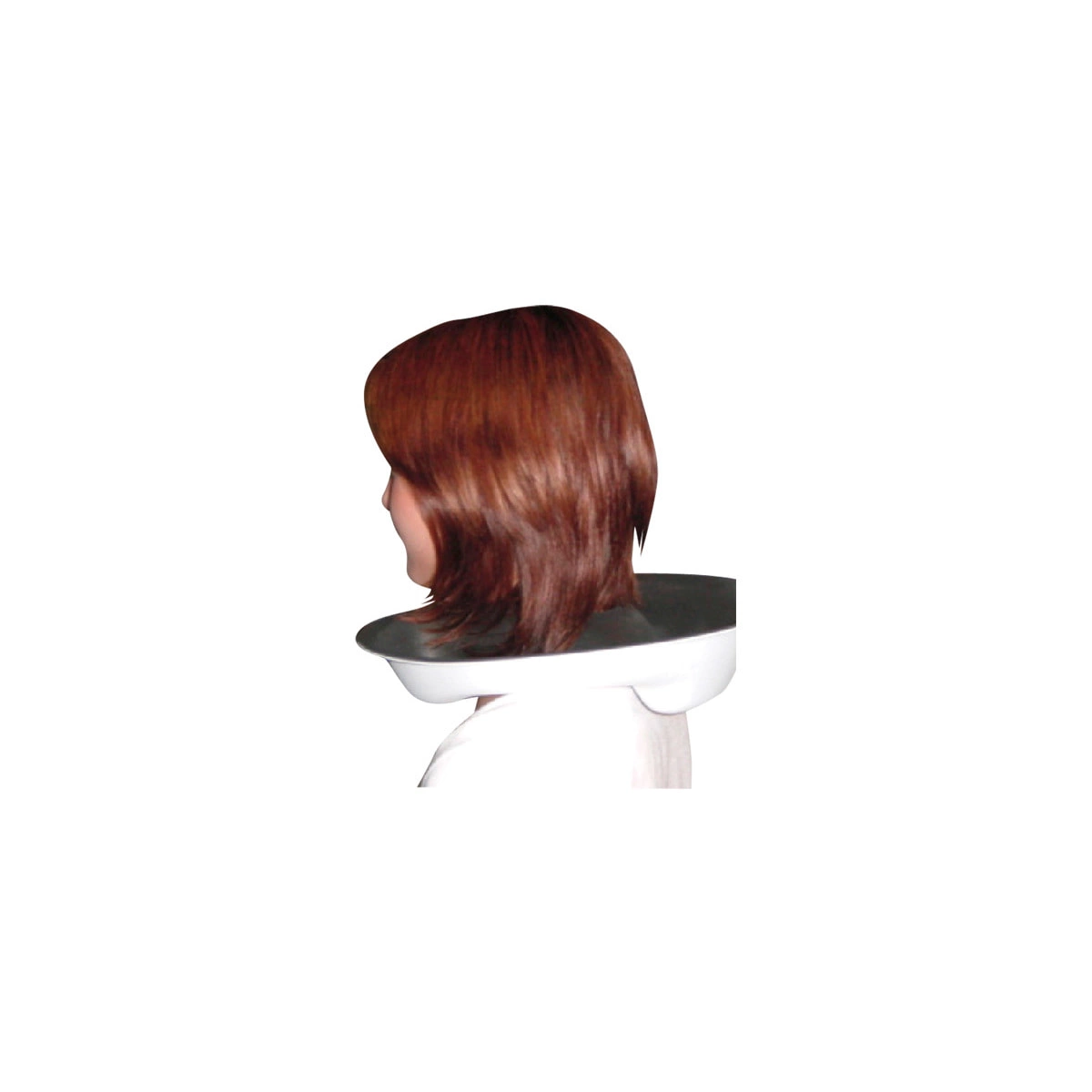 A tray that receives perm chemicals so that they do not get on your shoulders.